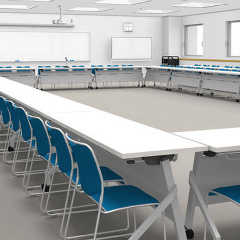 席の間隔にもよりますが、確実に録音するため、当社では3人に1台を目安に置いています。